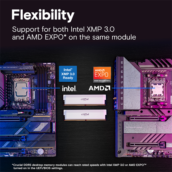 —Оперативная память Crucial Pro Gaming by Micron DDR5-6400 64GB Kit (2x32GB) UDIMM CL40 White 1.35V, 1 Year Warrаnty