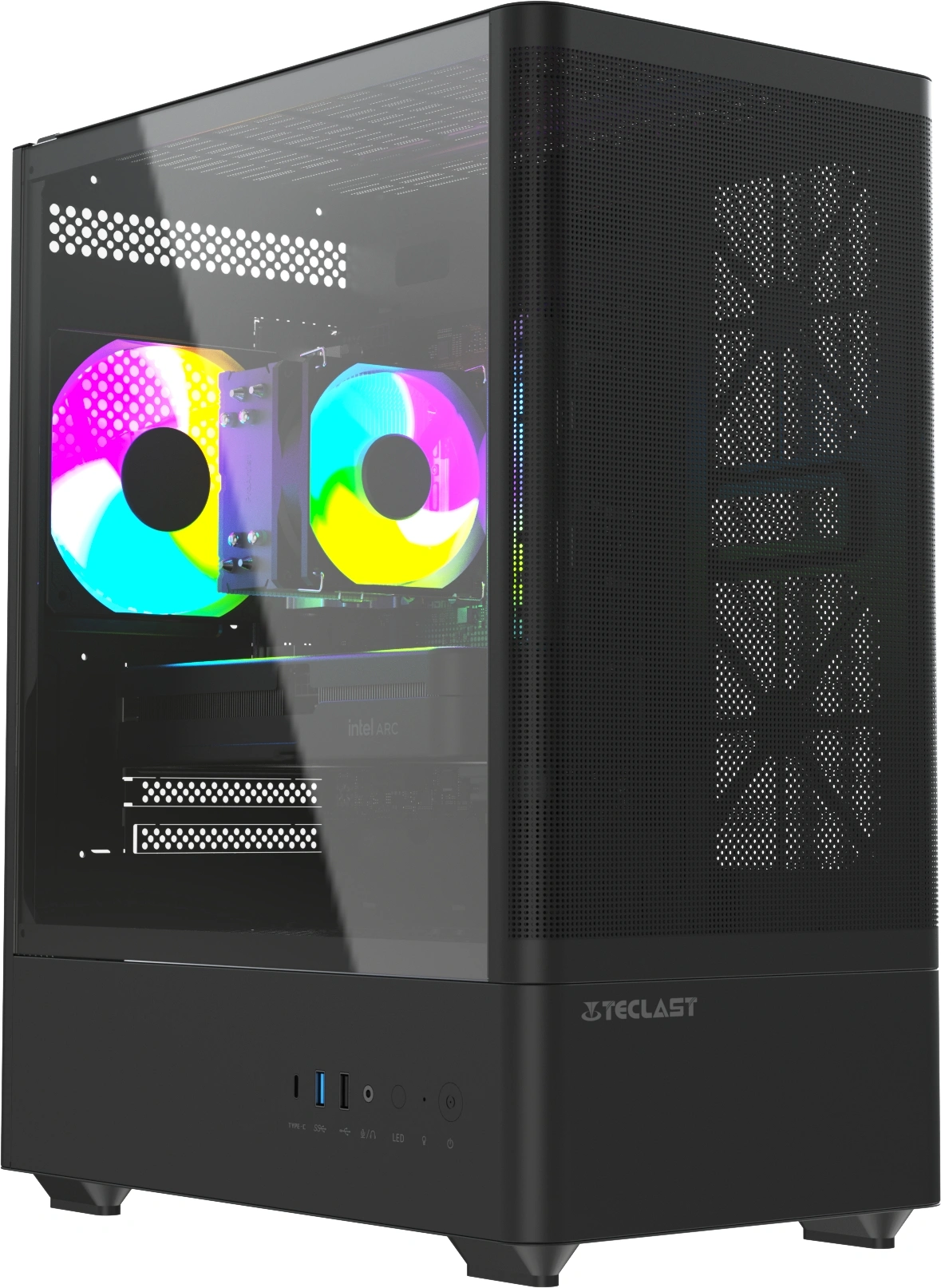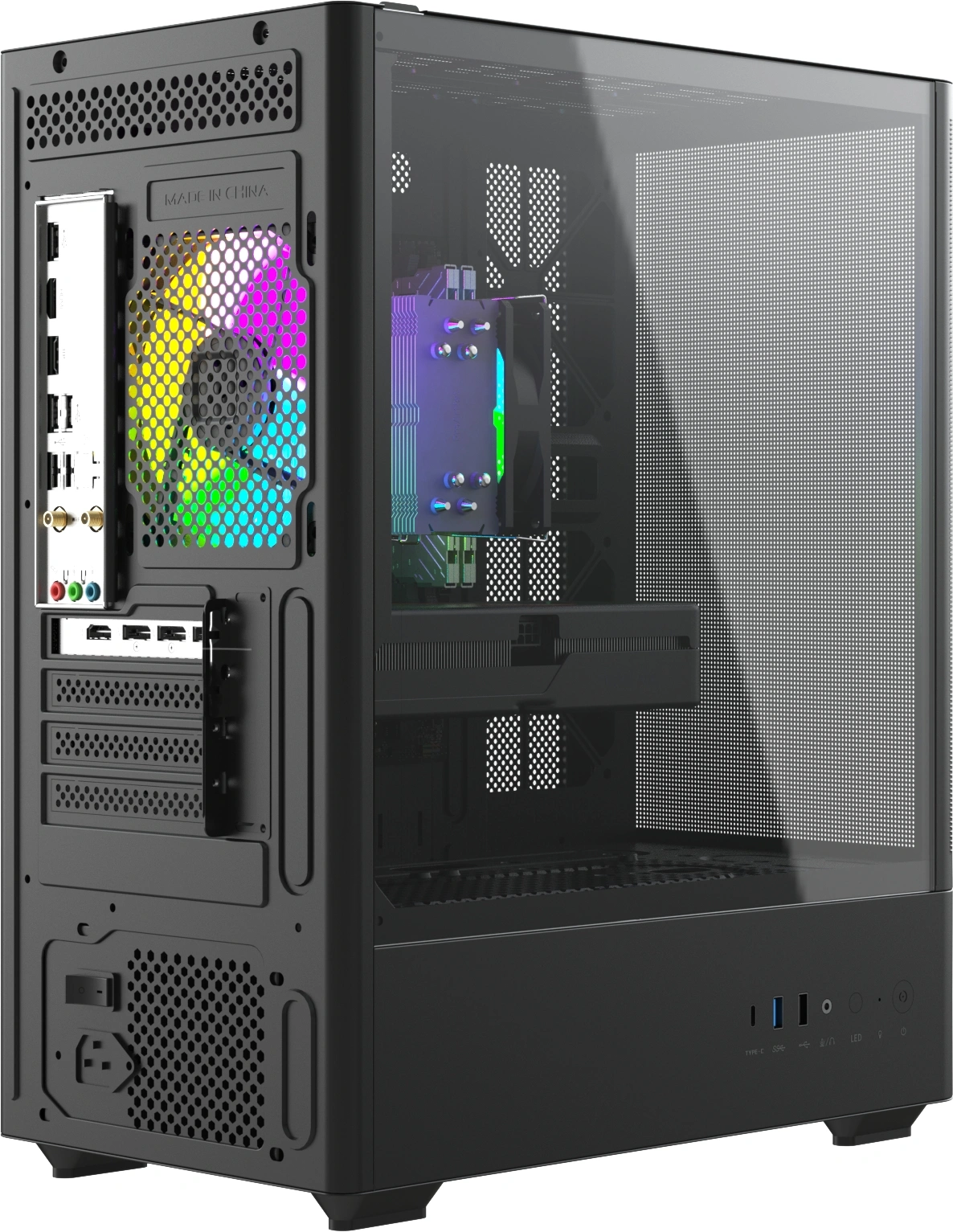 подсветка, прозрачная боковая панель, сетчатая передняя панель (Mesh)
