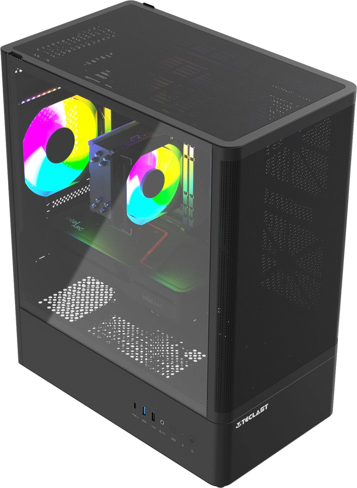 подсветка, прозрачная боковая панель, сетчатая передняя панель (Mesh)