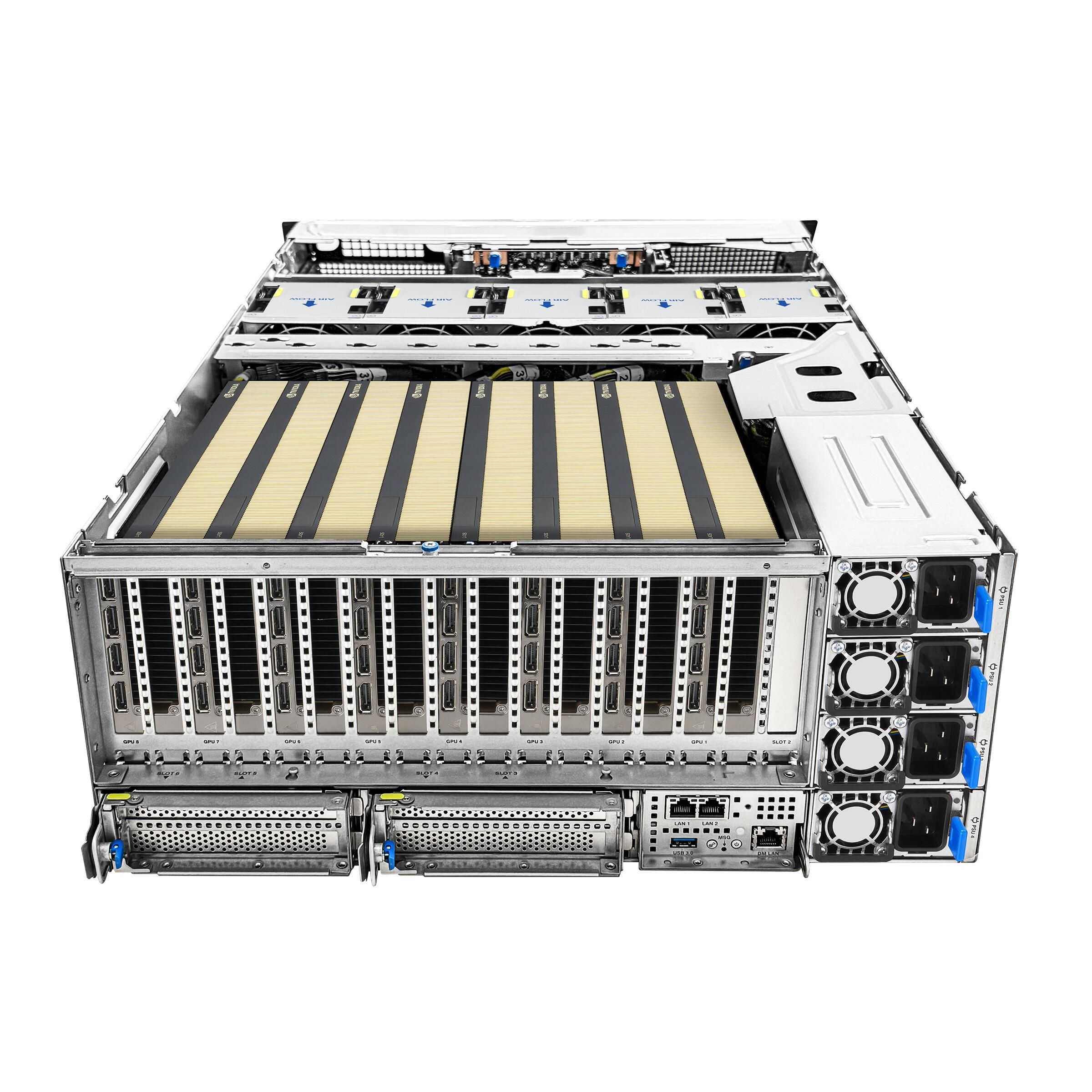 Поддержка до восьми двухслотовых NVIDIA H200 GPU или NVIDIA RTX PRO 6000 Blackwell Server Edition