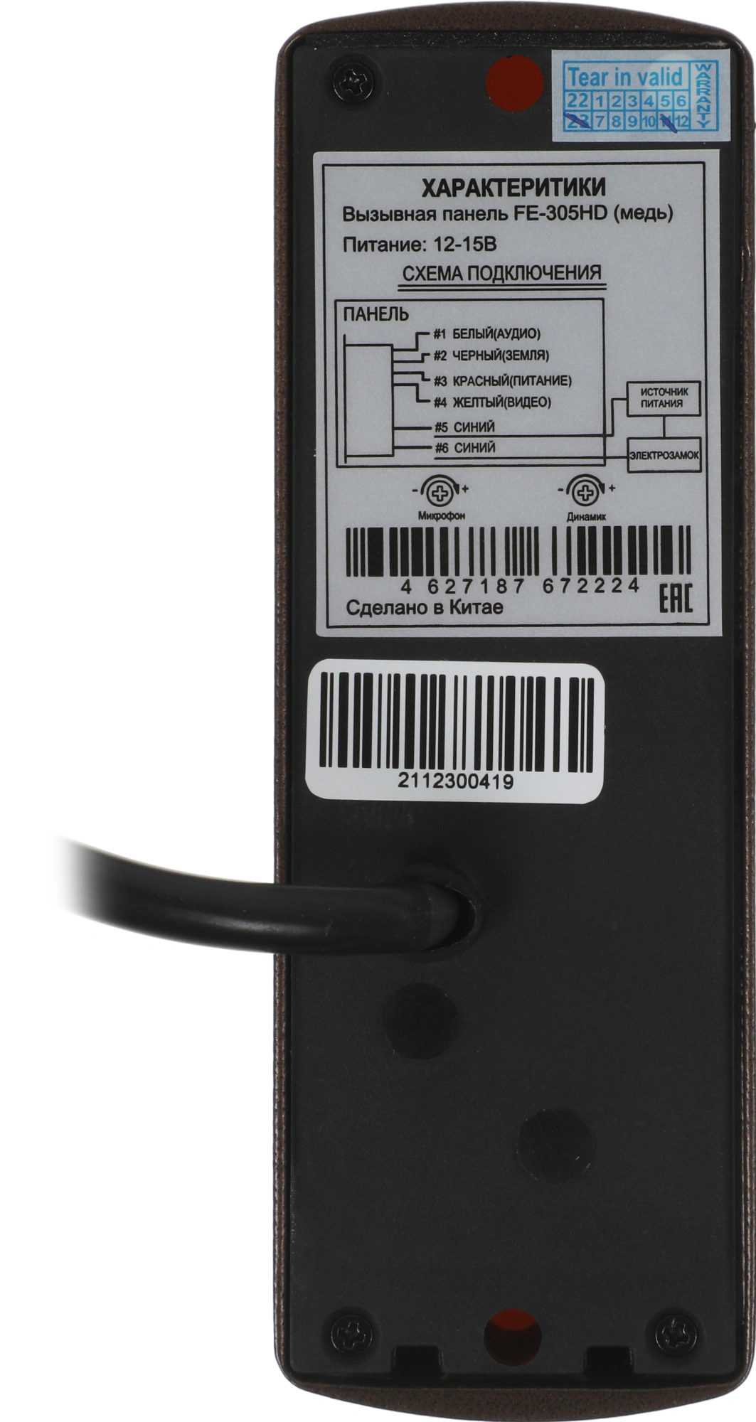 Тип вызывной панели | цветная |