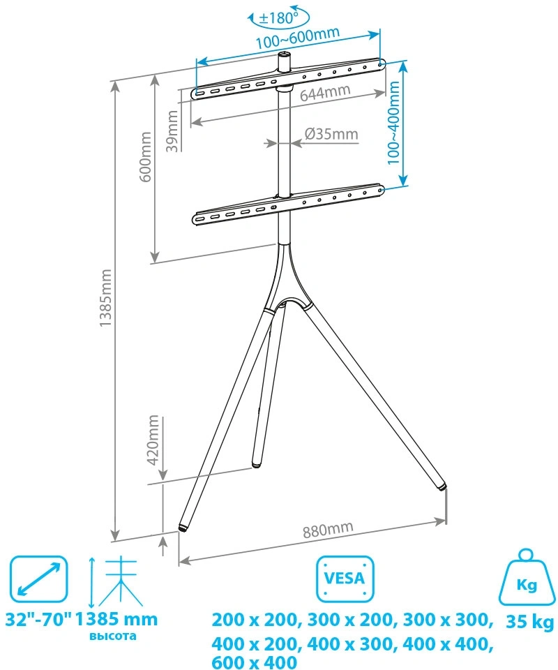 Поддержка крепления VESA | 200x200, 600x400 |