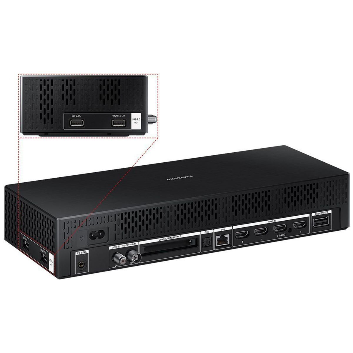 Телевизор, пульт ДУ на солнечных элементах, боковые ножки, настенный кронштейн Slim Fit, кабель One Connect, внешний модуль One Connect, сетевой кабель, документация